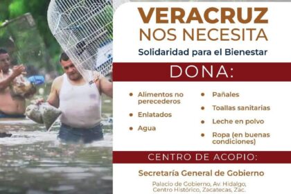 El Gobierno de Zacatecas, a través de la Secretaría General de Gobierno, hizo un llamado a la solidaridad ciudadana para apoyar a las familias afectadas por las intensas lluvias en Veracruz, donde l...