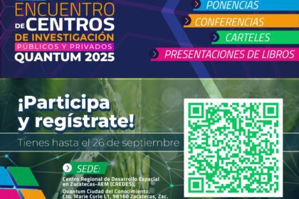 El Gobierno de Zacatecas, a través del Consejo Zacatecano de Ciencia, Tecnología e Innovación (Cozcyt), convoca al Tercer Encuentro de Centros de Investigación Públicos y Privados QUANTUM (ECIQ),...