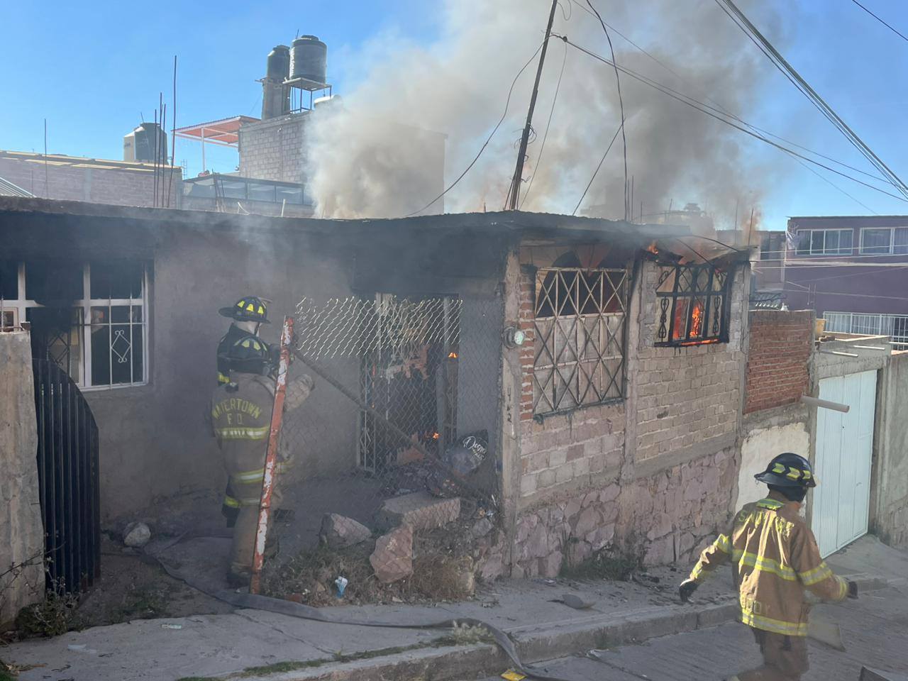 Personal de bomberos y Protección Civil se encuentra atendiendo un incendio en una casa habitación ubicada en la calle Francisco Villa, en la colonia Lázaro Cárdenas de la capital de Zacatecas. Los equipos de emergencia acudieron al reporte para controlar las llamas y evitar que el fuego se propague a viviendas aledañas en la zona.