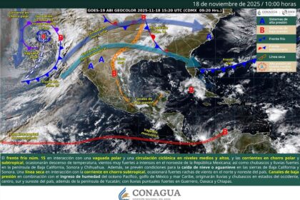 La primera tormenta invernal de la temporada 2025-2026 y el frente frío número 16 afectarán al noroeste de México con un marcado descenso de temperaturas, vientos muy fuertes y lluvias intensas. E...