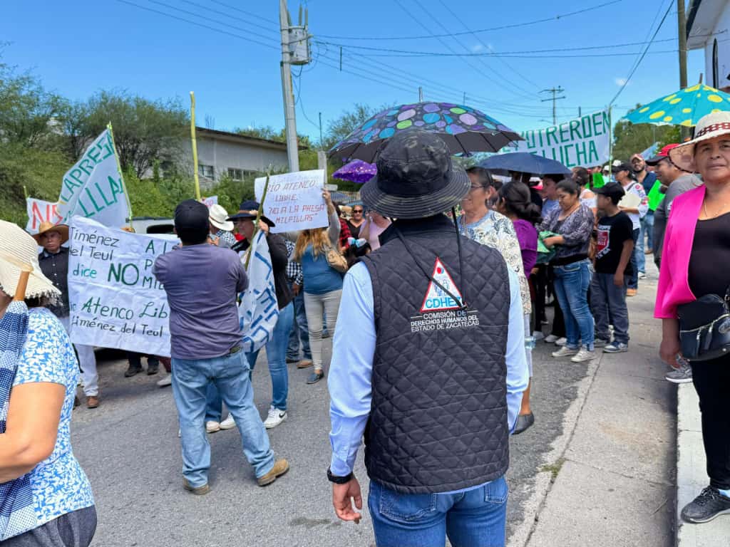 La Comisión de Derechos Humanos del Estado de Zacatecas (CDHEZ) supervisó la manifestación pública realizada por la Red Mexicana de Afectadas y Afectados por la Minería (REMA) en el municipio de Jiménez del Teul. Personal del organismo estuvo presente durante la marcha pacífica para garantizar el ejercicio del derecho a la libre manifestación y la protección de los derechos de los participantes.