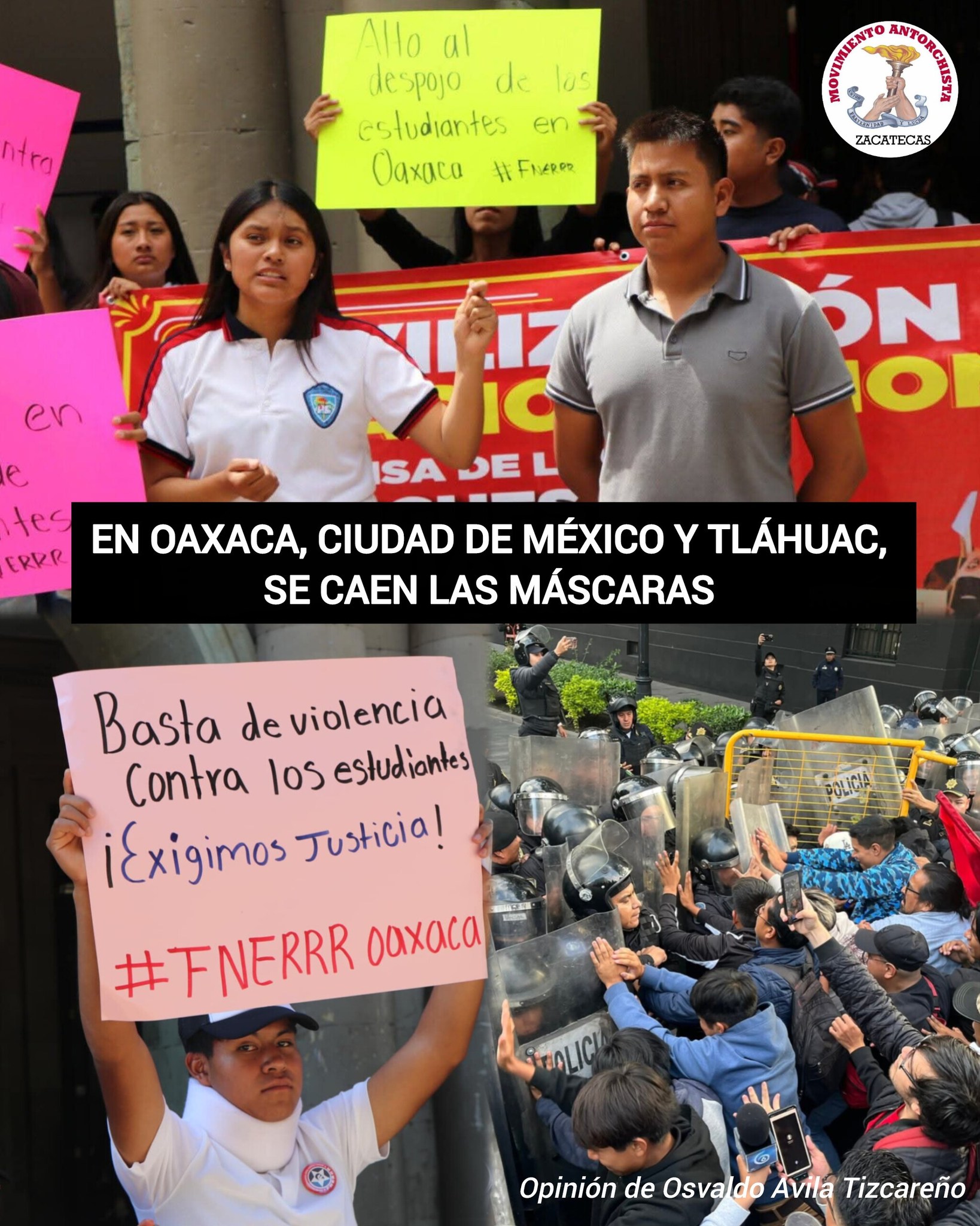 Han caído las máscaras de los morenistas, no existe el “primero los pobres”, ni hay preocupación por la educación. En Oaxaca, las nuevas generaciones no tienen opciones educativas y si se atreven a levantar la voz reciben empujones y macanazos; eso significa que los derechos constitucionales de organización, de educación y vivienda son inexistentes y comprueba que los gobernantes guindas señalados son idénticos a los represores del pasado, ante ello no hay otro camino más que luchar con firmeza y determinación.