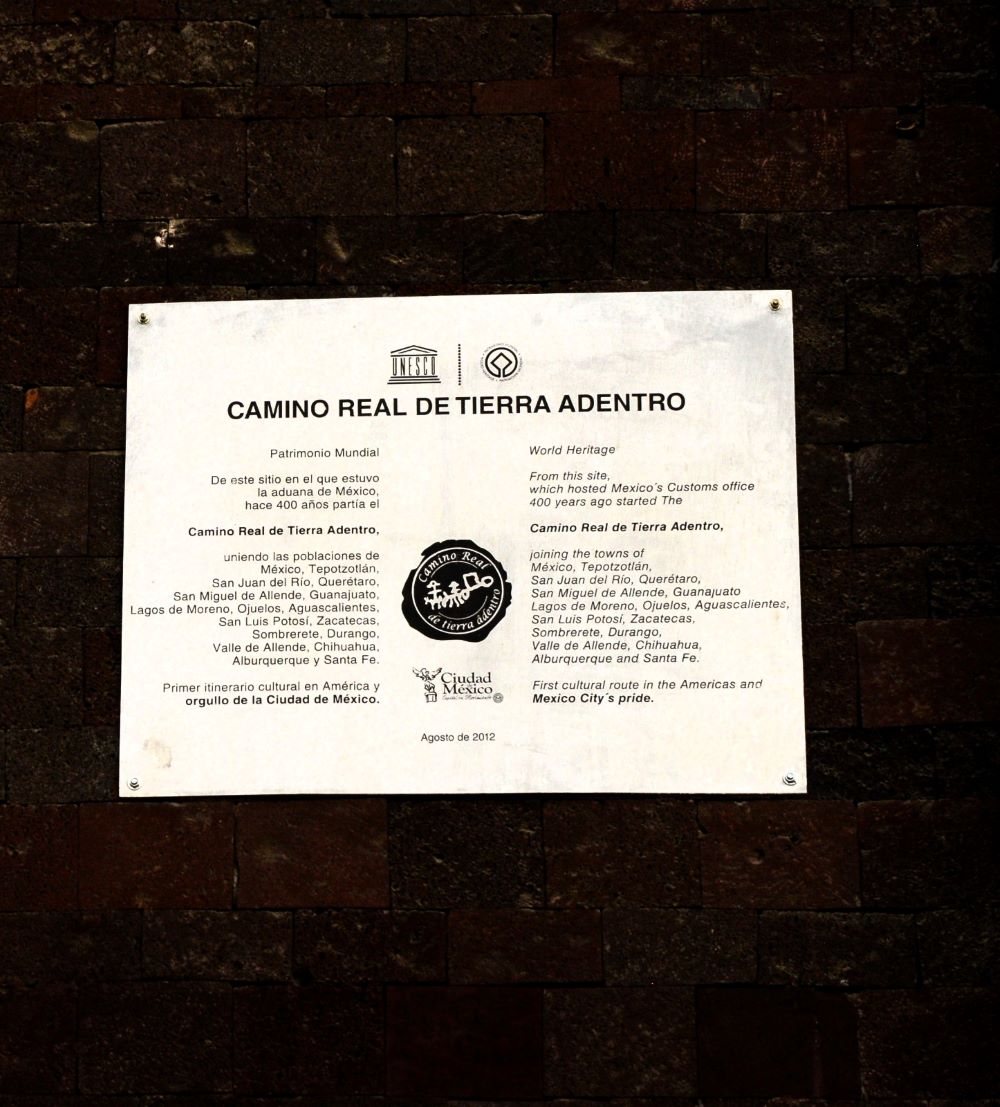 La primera placa reconoce el inicio histórico del itinerario que durante más de 2,500 kilómetros conectó la Ciudad de México con los centros mineros de Zacatecas y Guanajuato, hasta llegar a Santa Fe, Nuevo México. La segunda placa identifica al Centro Histórico como Sitio de Memoria de la Esclavitud de las Poblaciones Africanas y Afrodescendientes, distinción otorgada por la UNESCO en 2016.