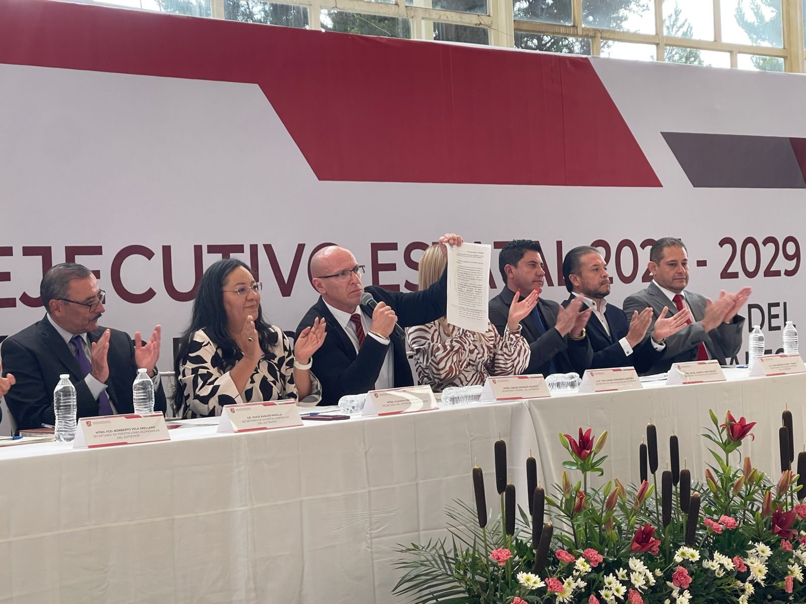 Finalmente, el dirigente presentó un documento emitido por el Tribunal de Justicia Laboral Burocrática del Estado, en el que se valida la elección del nuevo comité estatal, con lo que busca dar certeza jurídica a su legitimidad al frente de la organización sindical.