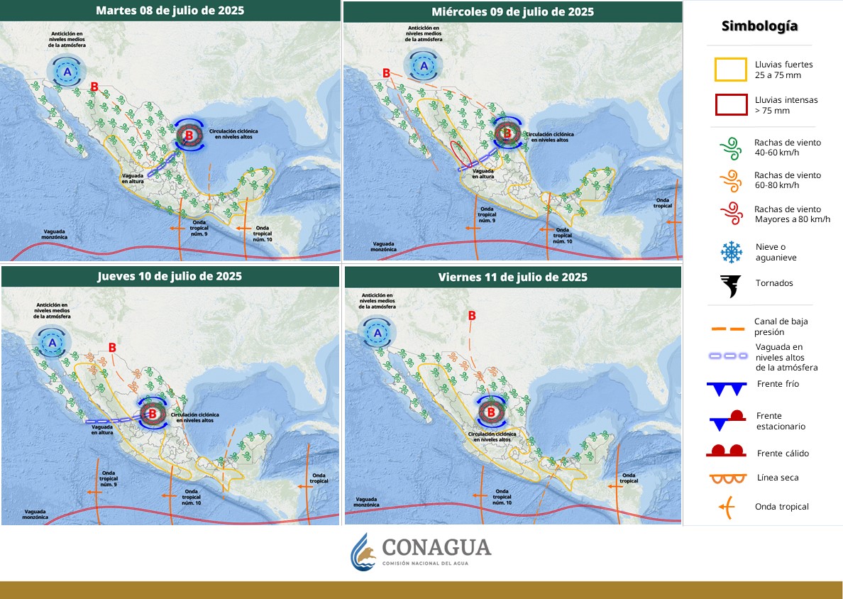 Estas condiciones pueden provocar incremento en ríos y arroyos, además de deslaves e inundaciones en zonas bajas, por lo que se recomienda seguir las indicaciones de Protección Civil y mantenerse informado mediante los canales oficiales del SMN y la Conagua.