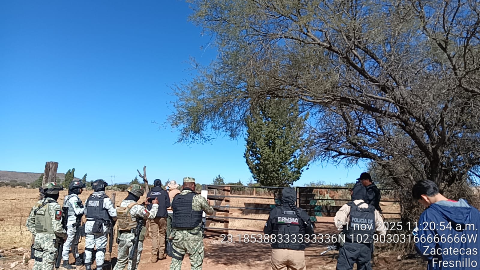 Paralelamente, este viernes se realizó un nuevo operativo de búsqueda en las inmediaciones del rancho Las Tres Morenas, en el municipio de Fresnillo. El operativo contó con personal de la Comisión Local de Búsqueda, la Fiscalía Especializada y el apoyo de la Secretaría de Seguridad Pública, la Guardia Nacional y el Ejército Mexicano.